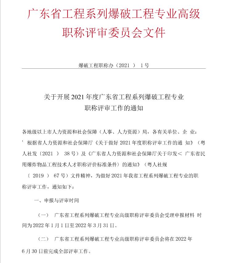 关于开展2021年度广东省工程系列爆破工程专业职称评审工作的通知